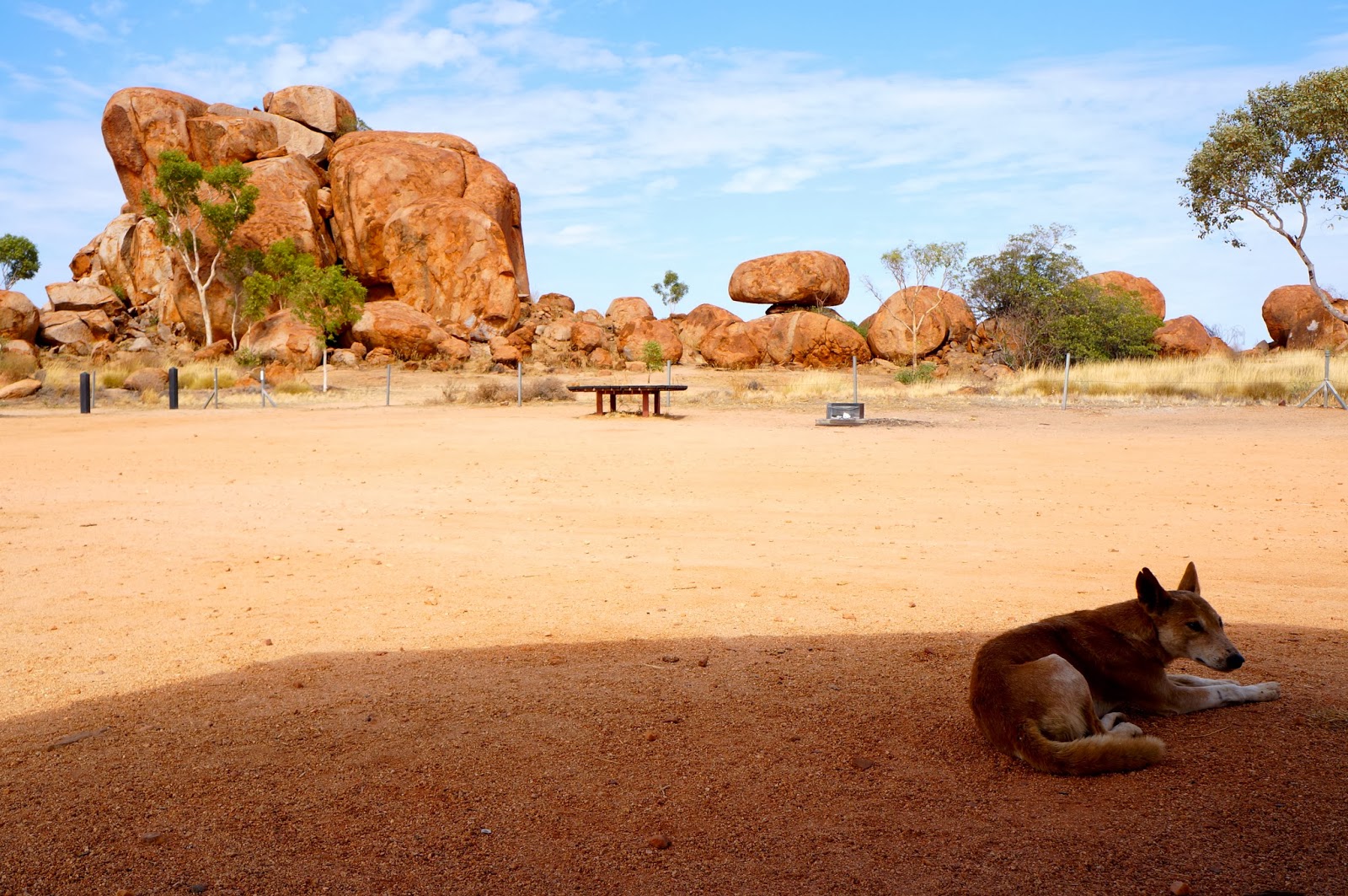 The Devil's Marbles and a lonely dingo |