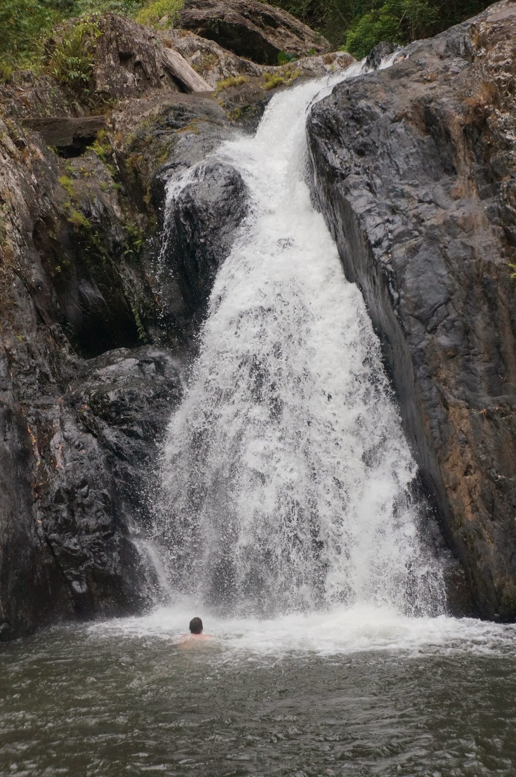 Since crocodiles terrify people enough to stay out of potential saltwater swimming spots, we followed the locals to this freshwater oasis (Adam is on the right) |